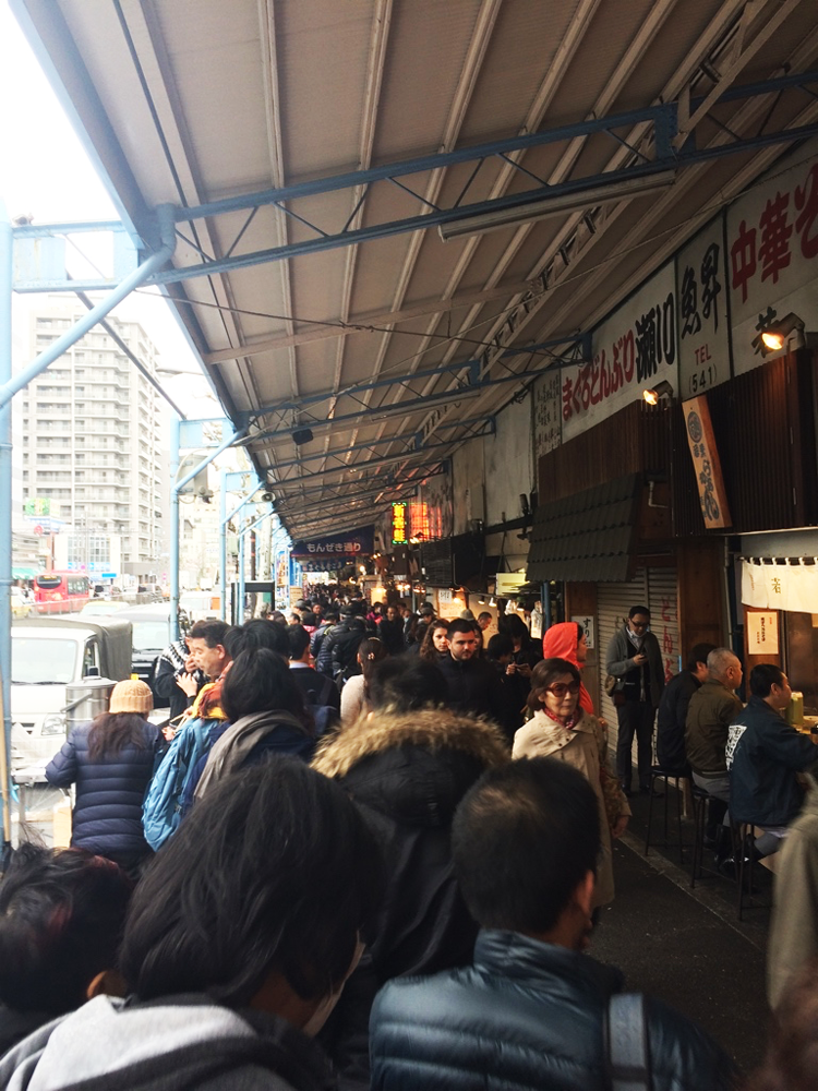 My first job was at a farmers’ market, when I was 14 and new and being paid under the table. (Soulard Market, I still adore you, never question.) I’ve had an affinity for open-air food markets ever since. Tsukiji is a mix of things in the way that happens when a market is both functional and a wildly successful tourist attraction: dizzying tables full of beautiful, intricately painted sushi dishes; tanks of beautiful, doomed fish; readymade food stands; and crowds and crowds and crowds. Still too shy and jet-lagged to make the most of things, I instead wandered through like a wraith, ducking down narrow alleys with counters with a scant five or six stools, peering into knife shops, and marveling at the mix of locals and tourists. (You can tell the latter from the former by their ability to maneuver a corridor or any other straight shot of pedestrian thoroughfare. This is a universal language; these days, I navigate Union Square in San Francisco five days a week, and my ability to tell a tourist at 50 paces has grown even sharper.)